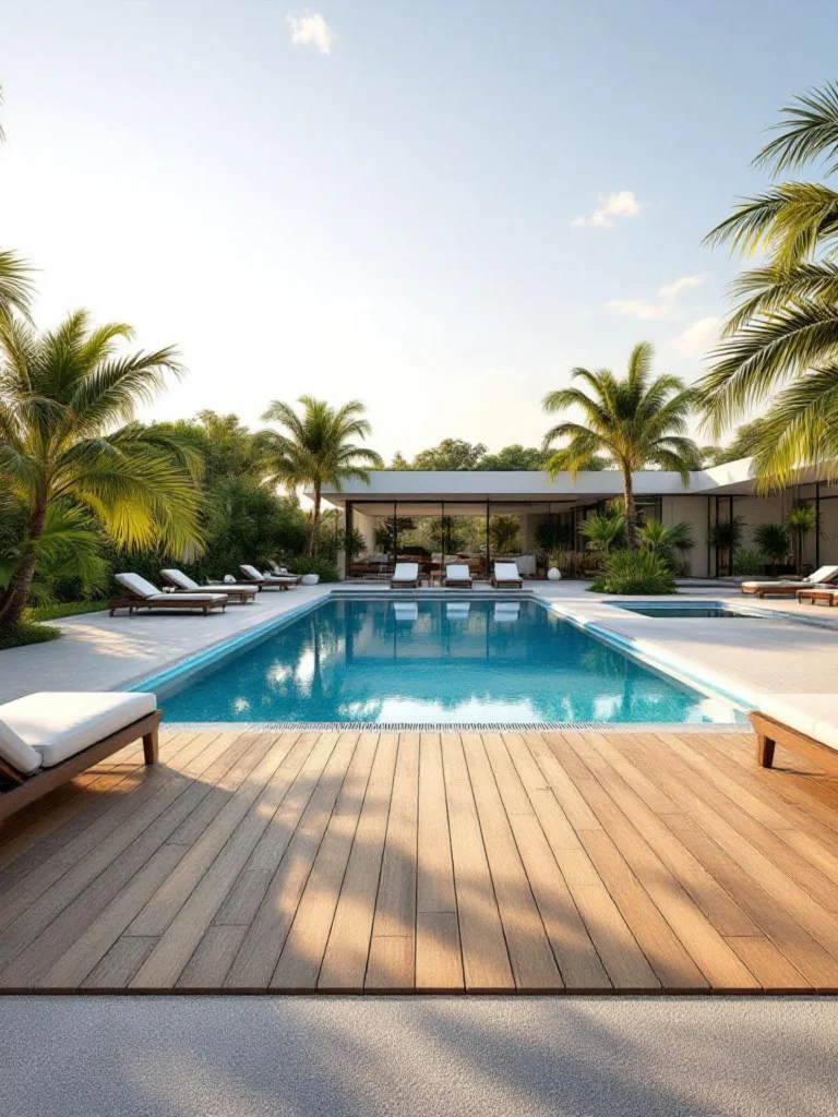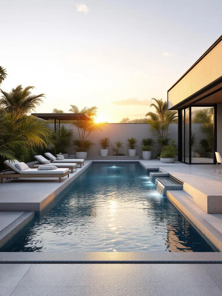 Композитні басейни тут мають перевагу — їх легко інтегрувати в рівень тераси без складних бетонних рішень.